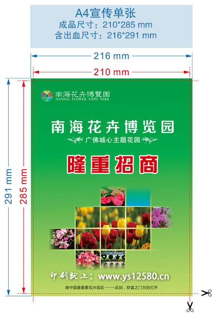 出血位是一個常用的印刷術語,印刷中的出血是指加大產品外尺寸的圖案,在裁切位加一些圖案的延伸,專門給各生產工序在其工藝公差范圍內使用,以避免裁切后的成品露白邊或裁到內容。在制做的時候我們就分為設計尺寸和成品尺寸,設計尺寸總是比成品尺寸大,大出來的邊是要在印刷后裁切掉的,這個要印出來并裁切掉的部分就稱為出血或出血位。